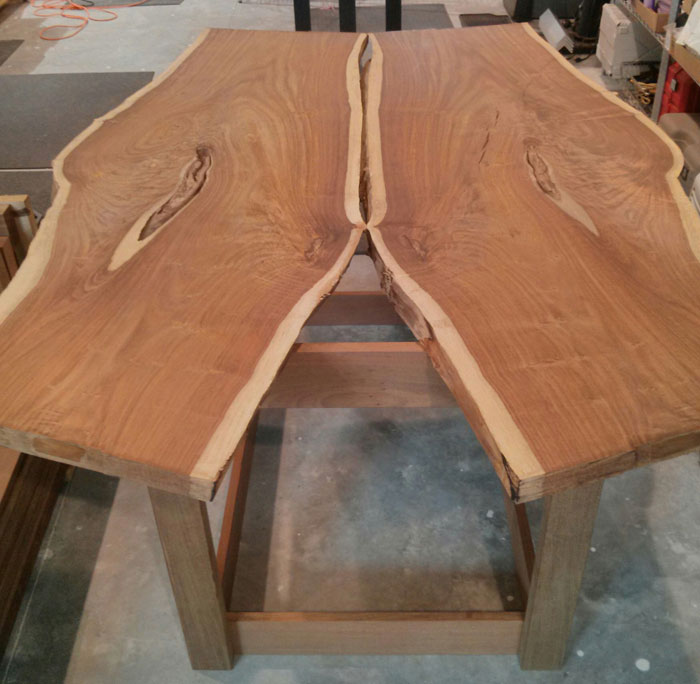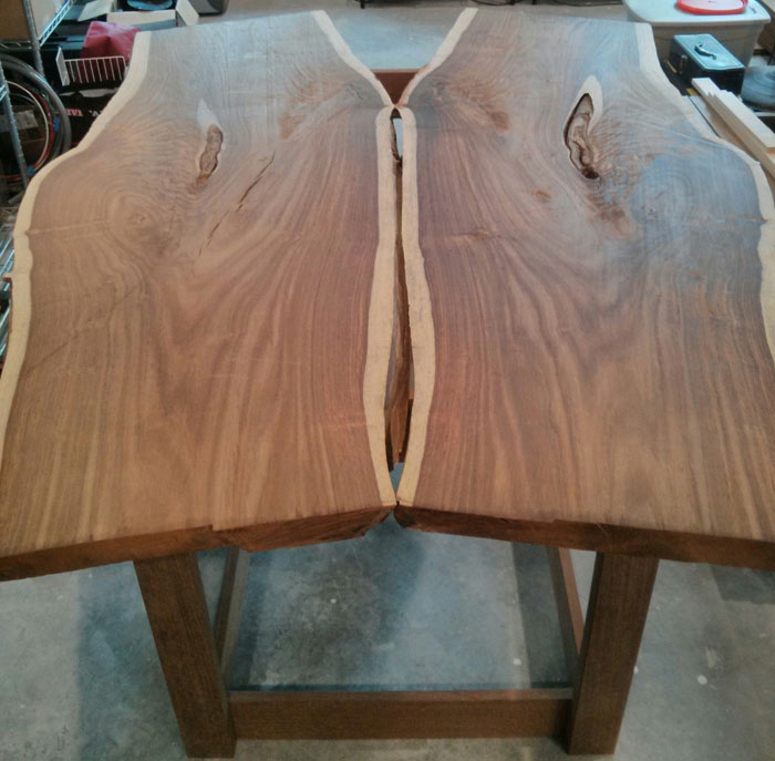 I had the tree sent to a mill and sliced into a flitch of live-edge slabs. I chose the slabs I wanted for the table and had them kiln dried at the mill.